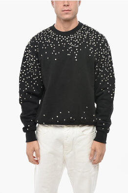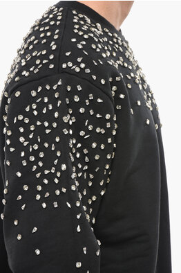 Crew Neck Brushed Cotton Sweatshirt with Rhinestones