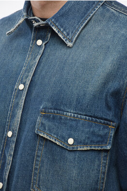 Denim overshirt with double pocket and embossed logo