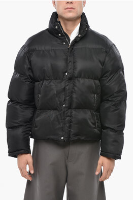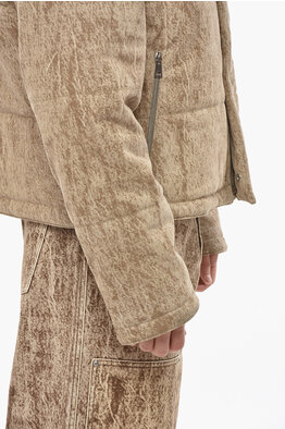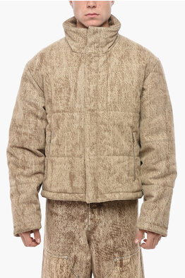 Flocked Fabric Padded Jacket with Embroidered Logo