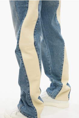 Jeans straight-leg MOTO with leather insert 22cm