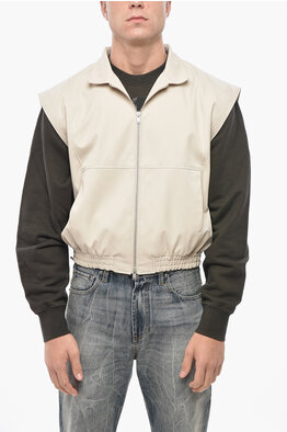 Sleeveless Cotton Gabardine Jacket with Zip Closure