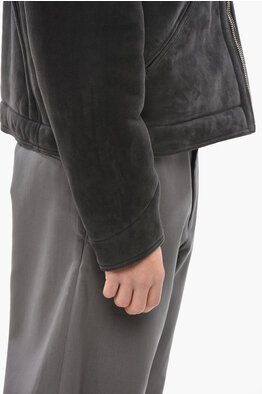 Suede Shearling Jacket with Embroidered Logo