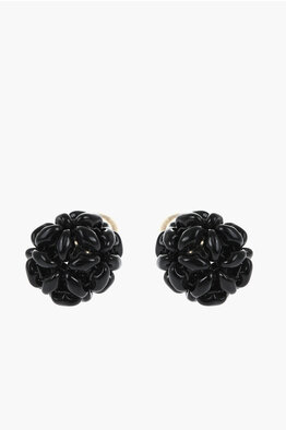 Round-Design Stud Earrings with Floral Effect