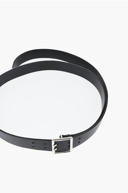 Solid-Color Leather Belt with Silver Buckle 30mm