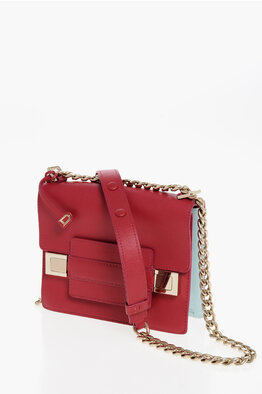 Two-Tone Leather Shoulder Bag with Golden Details
