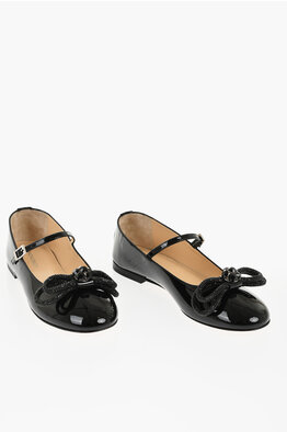 Patent Leather Mary Jane Ballet Flats with Jeweled Bow