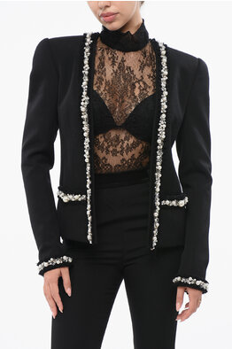 Collarless Blazer with Decorative Pearls