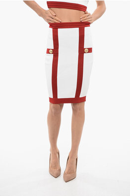 Knit Midi Skirt with Logo Buttons