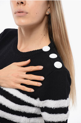 Knitted Pinstriped Top with Logoed Buttons