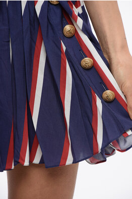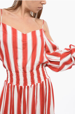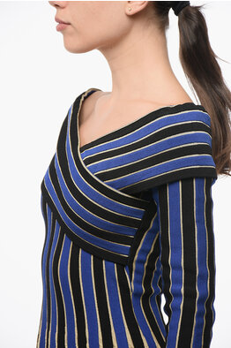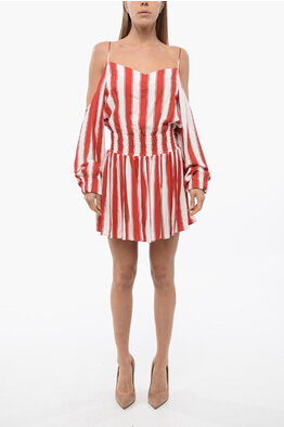 Viscose Mini Dress with Balanced Stripes and Cold-Shoulder Design