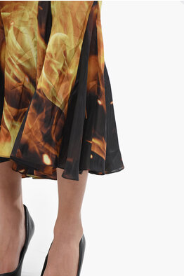 Silk Midi Skirt with Flame Print
