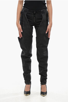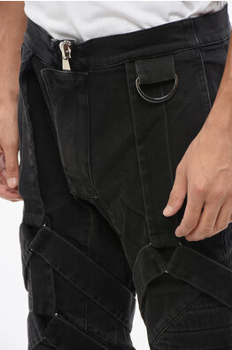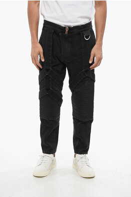 Stretch Denim Biker Jeans with 17cm Harness Details