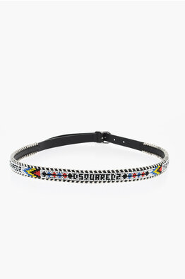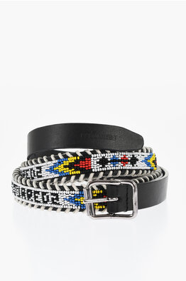 Leather Belt Embellished with Beads 20mm