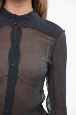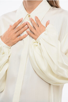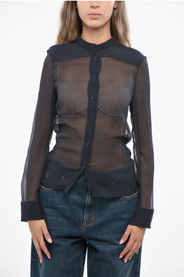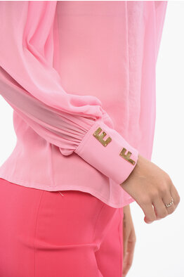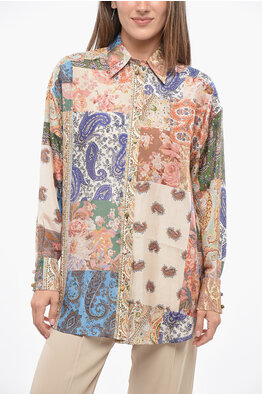 Patchwork Effect Silk DAVI Blouse with Jewels Buttons