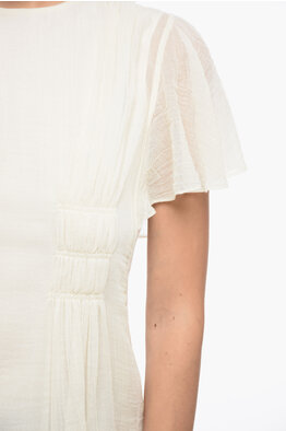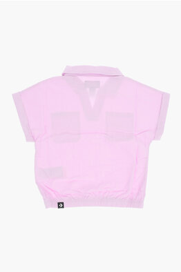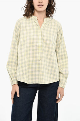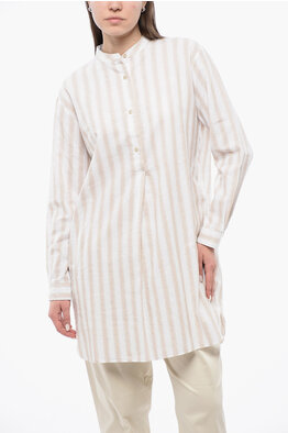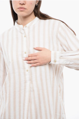 Awning Striped Cotton Blouse with Drawstringed Hem