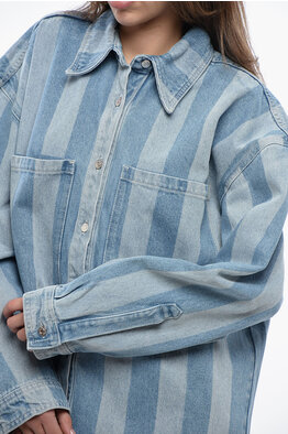 Awning Striped Denim BEAUX Overshirt with Logo Buttons