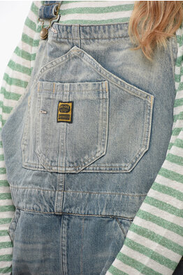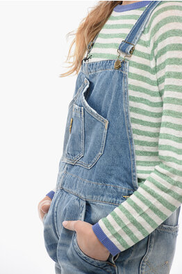 Denim Jumpsuit With Logoed and Golden Buttons