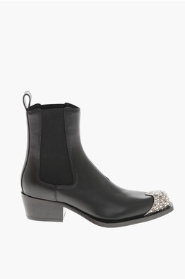 Leather Ankle Boots D-CALAMITY With Rhinestone Toe 5cm