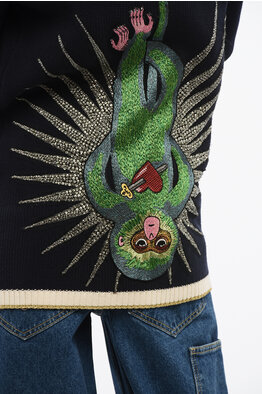 Wool-Blend Cardigan MOON PHASE Embroidered