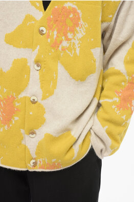 Merino Wool V-Neck Cardigan with Floral Embroidery