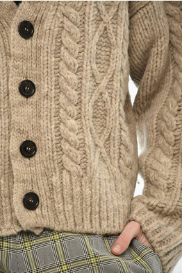 Mixed Wool Cable Knit Cardigan MOULINÈ with Distressed Details