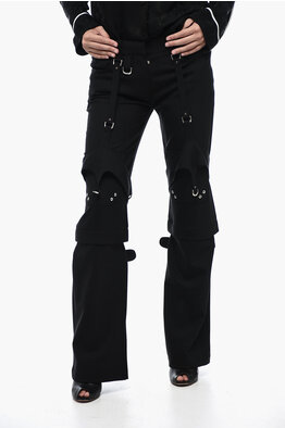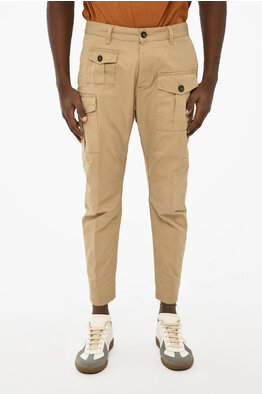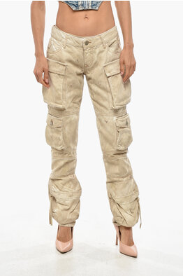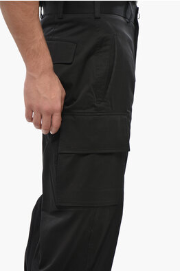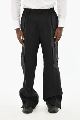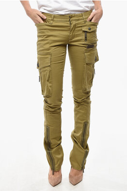 Stretch Cotton Flared Cargo Pants with Ankle Zip
