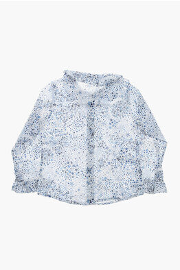 Cotton Poplin Overshirt with Floral Print and Zip Closure