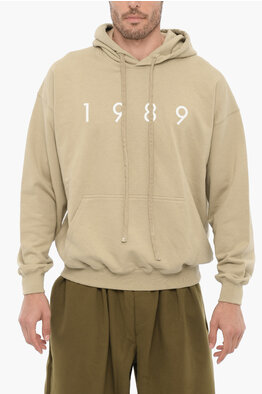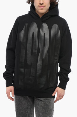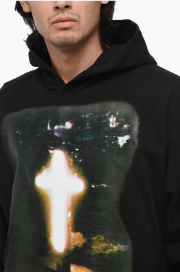 Cotton Hoodie Sweatshirt with Maxi Print