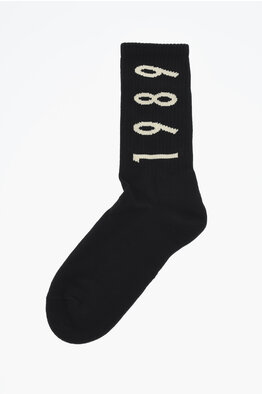 Ribbed Long Socks with Contrast Embroidery