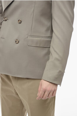 Wool Double Breasted Blazer with Peak Lapel