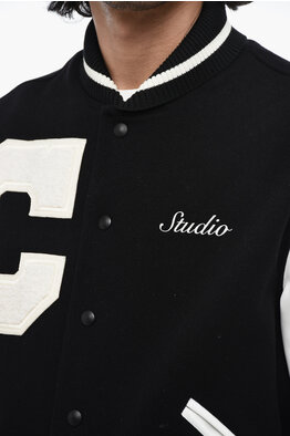 Wool Logoed Bomber with Leather Sleeves