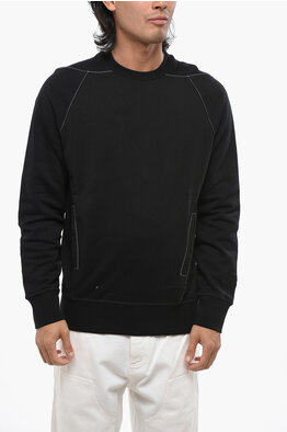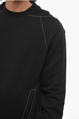 Brushed Cotton Crew-neck Sweatshirt with Visible Stitching