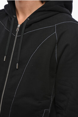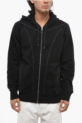 Brushed Cotton Sweatshirt with Visible Stitching and Zip Closure
