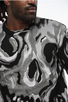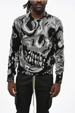 Crew-neck Sweater in Metallic Fabric with Jacquard Skull Motif
