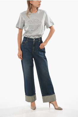 Cuffed Hem Stonewashed Jeans