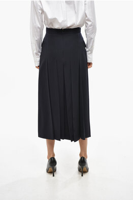Wool Accordion Midi Skirt with Belt