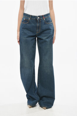 Washed-Effect Jeans with Applied Side Loops and Tie-up Laces at the Hem 26cm