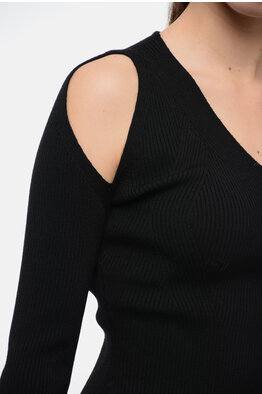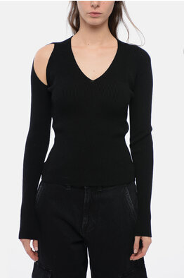 Stretch Wool Sweater with Cut-out