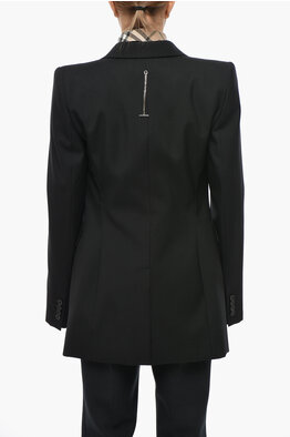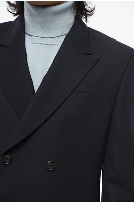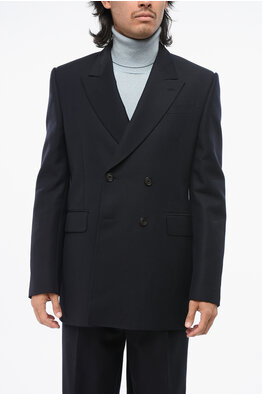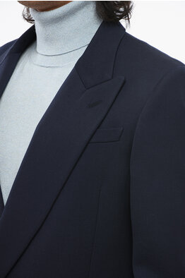 Wool Blend Center Vent Peak Lapel Double-Breasted Blazer