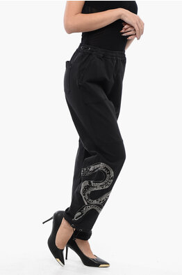 Stretch Cotton Pants with Elastic Waistband and Decorated Snake Motif