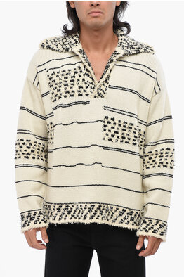 Cotton Blend Striped Jacquard Polo Neck Sweater