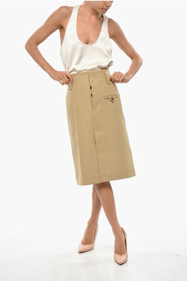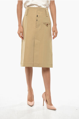 Cotton Pencil Skirt with Front Split