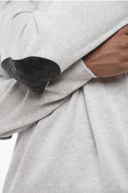 Crew Neck Cashmere Blend Sweater with Leather Patches