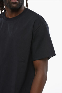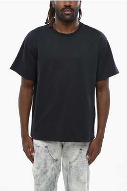 Crew-neck T-Shirt with Striped Poplin Lining