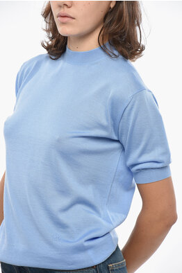 Short-sleeved Cashmere Sweater with Crew Neck