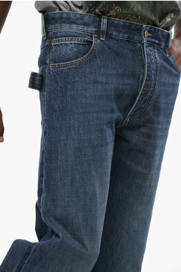 Straight Leg Cargo Jeans with Leather Patch 25cm
