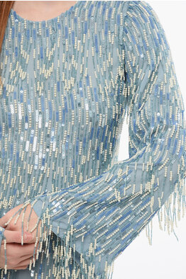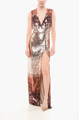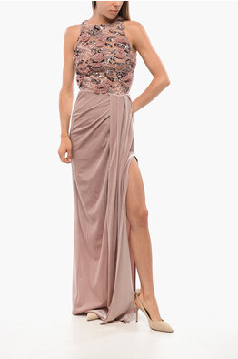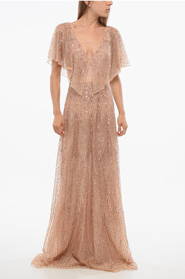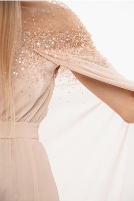 RED CARPET Chiffon Dress with Sequins and Cape Sleeves