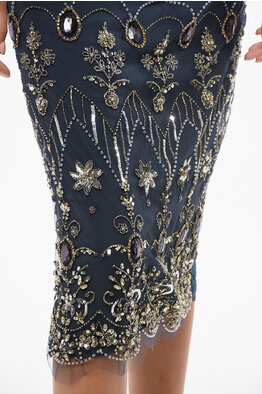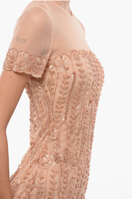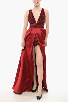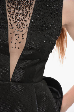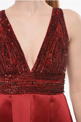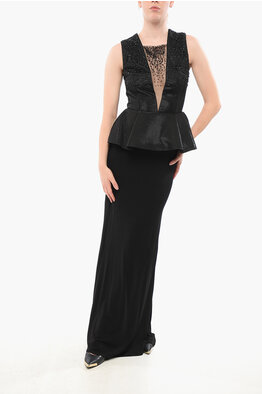 RED CARPET Peplum Dress with Sheer Insert and Beading