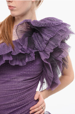 Polka-Dot Tulle One-Shoulder Ruffle Dress
