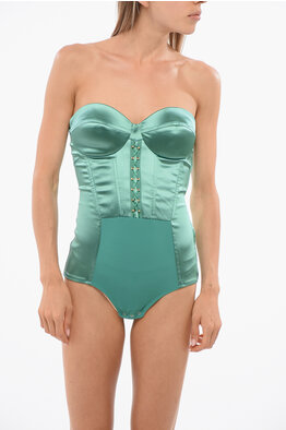 Velour Jumpsuit with Studs and Lace-Up Detail
